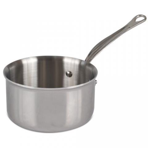 Mauviel M'Cook Sauce Pan, 1.9 qt. 6.3" dia. x 5"H, round, with lip, non-drip edge, riveted cast stainless steel stay cool handle, non-corrosive, oven safe to 680° F, gas/electric/halogen/induction/oven, 5-ply 18/10 stainless steel, polished finish