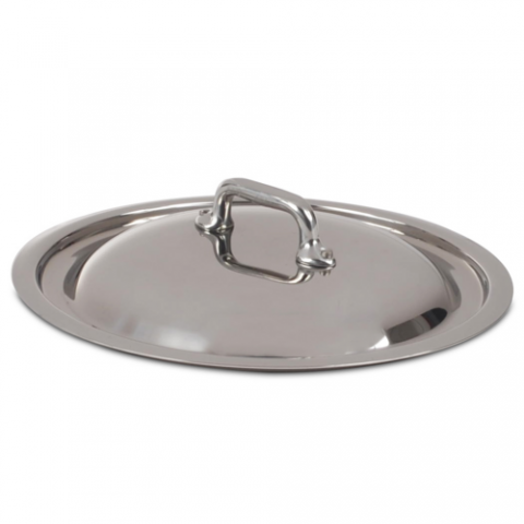 Mauviel M'Cook Pot/Pan Lid, 8" dia., round, riveted cast stainless steel stay-cool handle, dishwasher safe, 5-ply 18/10 stainless steel, polished finish
