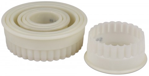 Matfer Exoglass® Cutters, 1-3/8"H, size range 1-3/8" dia. to 3-3/4" dia., fluted, round, white (set of 7)