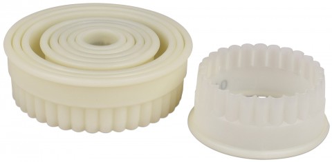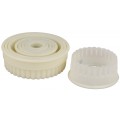 Matfer Exoglass® Cutters, 1-3/8"H, size range 3/4" dia. to 4" dia., fluted, round, white (set of 9 pieces)
