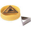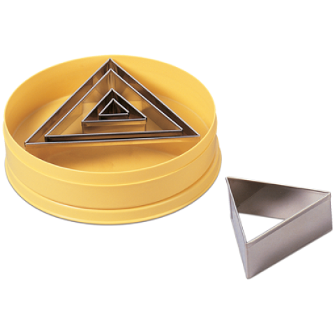 Pastry Cutter Set, 1-1/2"H, cut size range 8/9"L to 4-3/4"L, triangular, stainless steel, yellow plastic box (5 pieces per set)