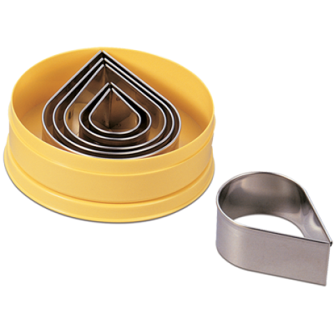 Pastry Cutter Set, 1-1/2"H, cut size range 1-3/4"L to 4-3/4"L, teardrop shaped, stainless steel, yellow plastic box (6 pieces per set)
