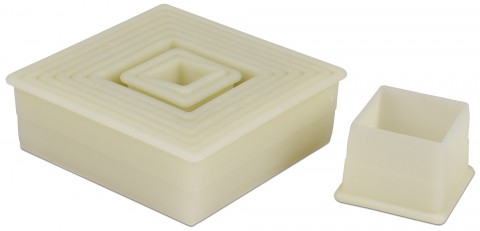 Cutter Set, size range 1"L to 3"L, square, plain, seamless, heat resistant, polyglass plastic, white (set of 9 pieces)