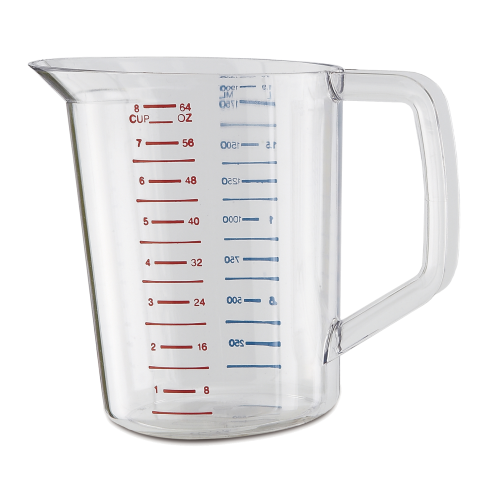 Rubbermaid Measuring Cup, 8 cup (64 oz.) capacity, graduated, impact resistant, rigid plastic, transparent, Made in USA, NSF