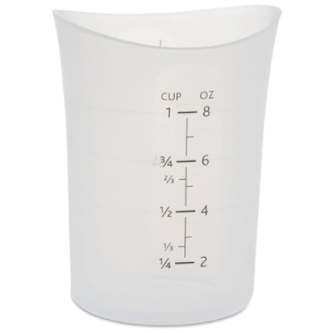 iSi Flex-it Measuring Cup, 1 cup (8 oz.,) capacity, 2-1/2" dia. x 4-1/4"H, flexible, heat resistant, microwave and dishwasher safe, textured exterior, silicone, transparent