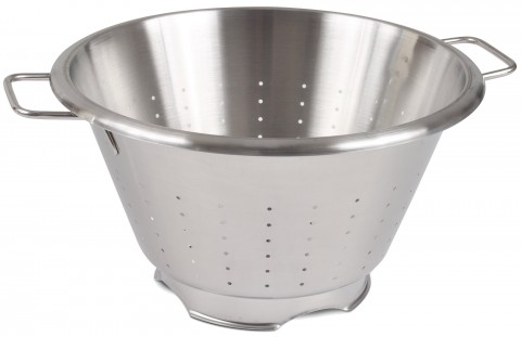 De Buyer Colander, 11-5/8" dia., conical, (2) side handles, rolled rim, raised base, dishwasher-safe, stainless steel