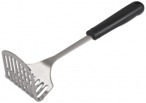 Deglon Potato Masher, 10-1/2"L, curved edge, stainless steel, plastic handle, black