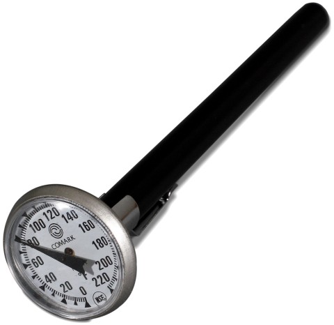 Comark Pocket Thermometer, 1" dia. dial, 5"L, adjustable reading from 0 to 220°F, stainless steel, plastic holder, black