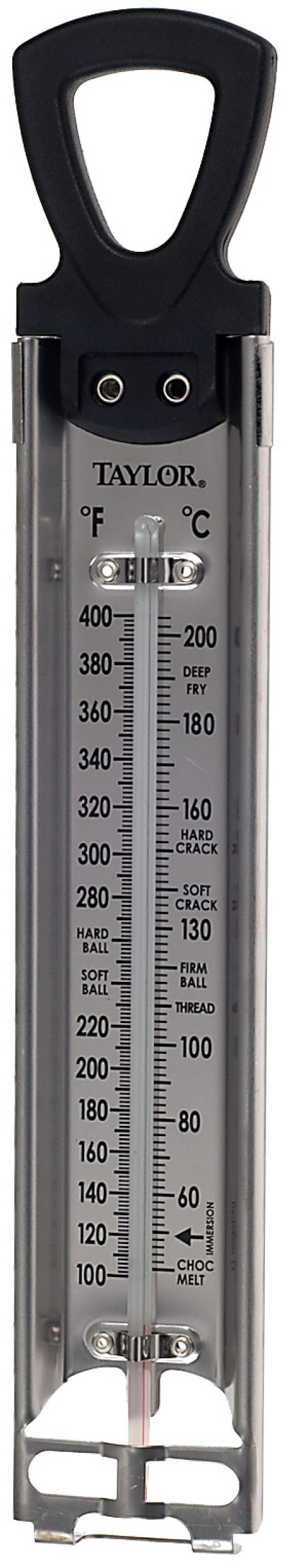 Taylor Confection Thermometer, 12"L, 100 to 400°F graduated temperature range, pot clips, stainless steel, plastic, black