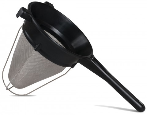 Matfer Mesh Strainer, 8" dia., fine stainless steel mesh, reinforced, dishwasher safe, heat resistant up to 430°F, exoglass frame, black