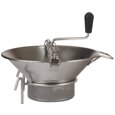 French Food Mill, 8 qt., 14" dia., includes (1) sieve with 3.0mm holes, double pulping area, processes 10 lbs. per minute, stainless steel