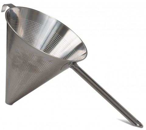 China Cap Strainer, 9-1/2" dia., medium perforation, 18/10 stainless steel