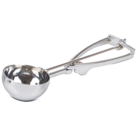 Stockel Scoop, size 16, 2.1 oz., 9-1/4"L overall, round, chrome plated brass handles, stainless steel, Made in Germany