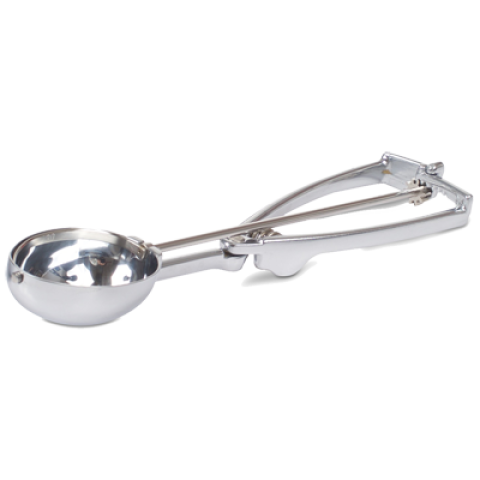 Stockel Scoop, size 30, 1-1/2 oz. capacity, 10"L overall, oval, chrome plated brass handles, stainless steel, Made in Germany