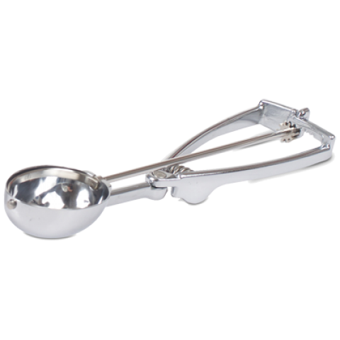 Stockel Scoop, size 40, 1 oz. capacity, oval, 10"L overall, chrome plated brass handles, stainless steel, Made in Germany