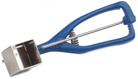Stockel Scoop, #30, 1 oz., cube, stainless steel, plastic handle, blue