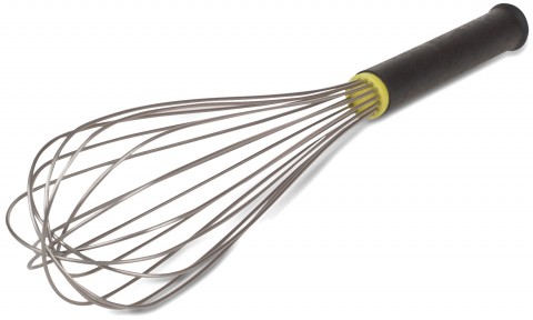 Matfer Whisk, 14"L, piano whip, textured composition handle, sealed, watertight, dishwasher safe, stainless steel, black handle