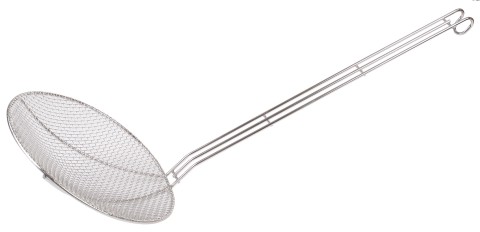 Skimmer 10" dia. x 20"L, hook on handle, mesh basket, stainless steel