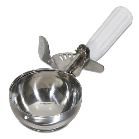 Hamilton Beach Disher, size 6, 5 oz., stainless steel, sure grip handle, white, NSF