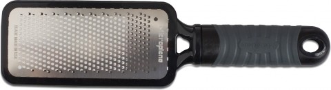 Microplane® Grater, 11"L x 3-3/8"W x 3/4"H, coarse blade, for hard cheeses and chocolate, includes (1) protective cover, dishwasher safe (top rack), black plastic frame, non-slip handle, surgical grade stainless steel