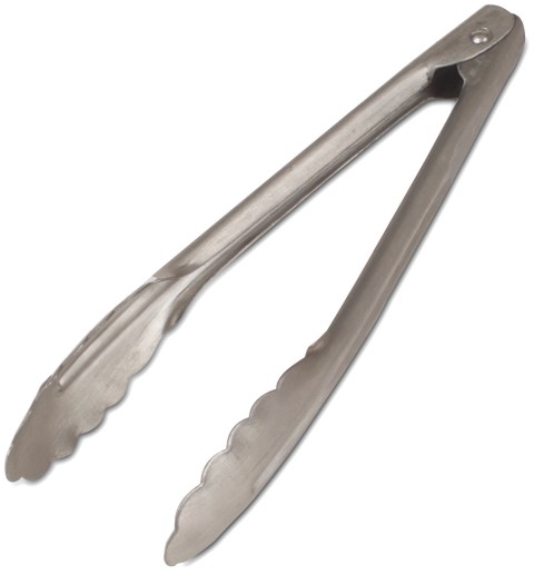 Asian Tongs, 7"L, mini, scalloped edge, stainless steel