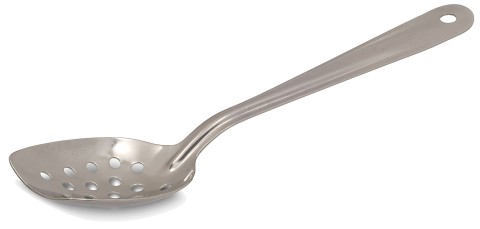 Utility Spoon, 10"L, perforated, slanted, stainless steel,