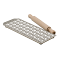 Imperia Ravioli Maker, 4-1/8"L x 5-1/2"W, (44) cavities, 1" squares, includes (1) wood rolling pin, rubber feet, pressed aluminum on enameled steel base