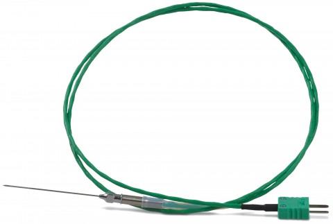 Type K Penetration Probe, 2-1/2"L, ultra fine, compatible with any thermocouple that accepts type K connection, -418 to 600°F (-250 to 315°C) 40" Teflon coated heat resistant cable, green, for model U840