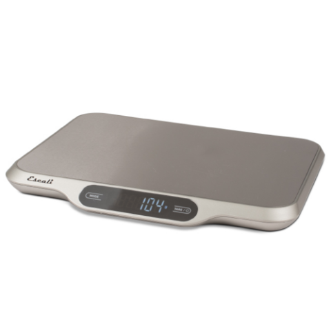 Escali Slimline Digital Scale, 33lb, 12.6"W x 10"D x 1"H, touch screen display, water resistant, stainless steel and plastic, made in USA