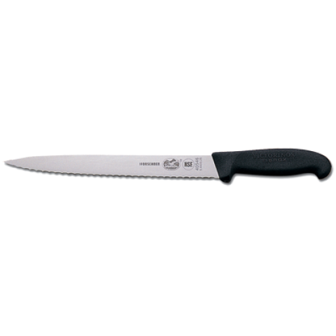Victorinox Slicer, 10", pointed, serrated, stamped, high carbon stainless steel, plastic handle, black, Made in Switzerland, NSF (SOLD IN US ONLY)