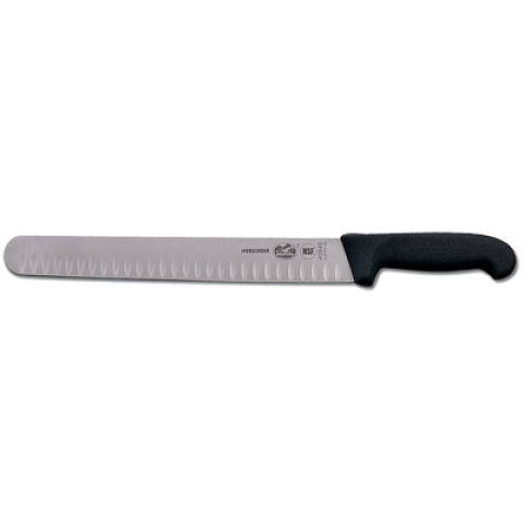 Victorinox Slicer, 12", wide, hollow ground, stamped, high carbon stainless steel, plastic handle, black, Made in Switzerland, NSF (SOLD IN US ONLY)