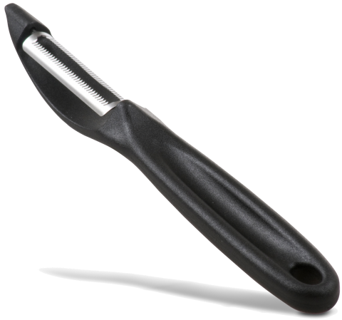 Victorinox Peeler, 2-1/4", slim, serrated, high carbon stainless steel, plastic handle, black (SOLD IN US ONLY)