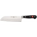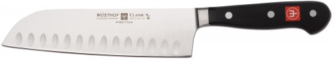 Wusthof Classic Santoku Knife, 6-1/2", forged, hollow ground, high carbon steel stainless steel, plastic handle, black, Made in Germany
