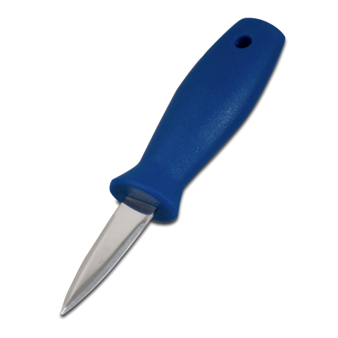Oyster Knife, 2-1/4", pointed, stainless steel blade, plastic handle, blue