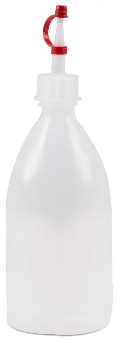 Squeeze Bottle, 6-1/2 oz., tapered, red fine tip, plastic, transparent