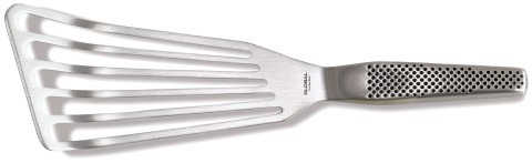 Global Spatula. 6", slotted, with curved tip, stainless steel, Made in Japan