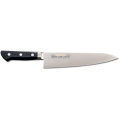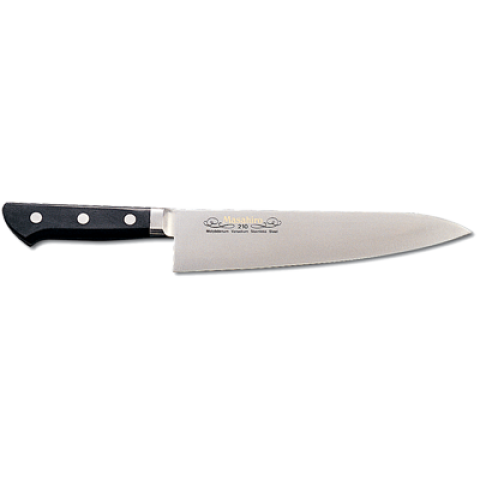 Masahiro Chef's Knife (Gyuto), 7", forged, straight blade, smooth edge, high carbon stainless steel, wood handle, black, Made in Japan