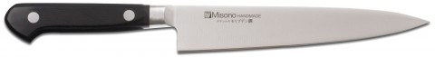 Misono Paring Knife, 5-9/10"L, petty style (spear point), forged, high carbon steel blade, wood handle, black