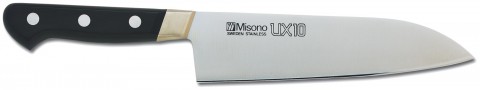 Misono UX-10 Santoku Knife, 7"L, forged, smooth edge, high carbon stainless steel blade, wood handle, black