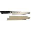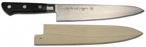 Kikuichi Chef Knife (Gyuto), 8", forged, smooth edge, high carbon stainless steel blade, wood handle, includes Saya blade cover, Made in Japan