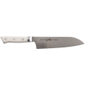 Mcusta Zanmai Pro Santoku Knife, 7" blade (180mm), forged, molybdenum/vanadium steel blade, Dupont Corian handles, white, Made in Japan