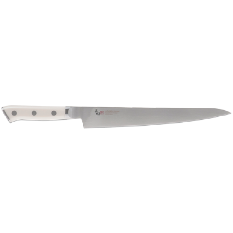 Mcusta Zanmai Pro Sujihiki Slicer, 9-2/5", forged, molybdenum/vanadium steel blade, Dupont Corian, white, Made in Japan