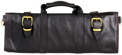 Boldric Knife Bag, (18) pockets, consist of: (17) slots for knives and tools, (1) utility pocket, (3) slots for business cards, (4) pen loops, leather, black