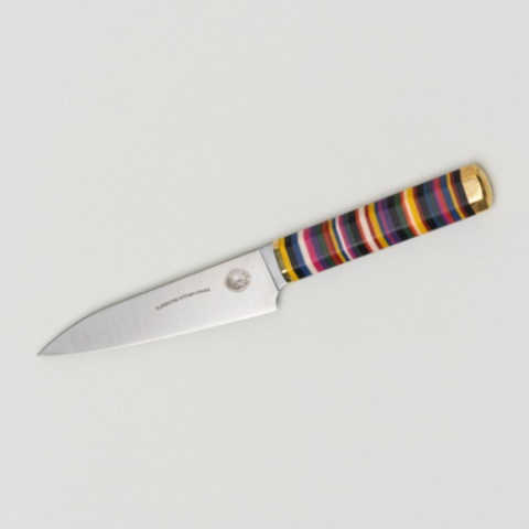FKK Paring Knife, 3.9" blade, stainless steel, composite, leather, brass pommel handle