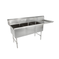 "B" Series Sink, 3-compartment, 70"W x 25-1/2"D x 44"H overall size, (3) 16"W x 20" front-to-back x 14" deep compartments, (1) 18" right drainboard, 10"H boxed backsplash with 45° top and 2" return, (1) set of splash mount faucet holes with 8" centers, 3-1/2" die-stamped drain openings, 16/300 stainless steel construction, stainless steel legs, adjustable side bracing, adjustable bullet feet, NSF, CSA-Sanitation (Available in Effingham and Nevada)