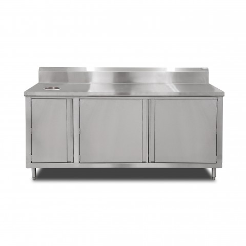 Beverage Unit, cabinet base with hinged doors on front, 48"W x 36"D x 40-3/4"H overall size, 14/300 stainless steel top with 5" backsplash, Stallion Safety Edge front and square turndown ends, 6" diameter trash chute on left (slim jim not included), 18/400 stainless steel wrap with legs & adjustable feet, NSF (Available in Effingham and Nevada)