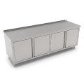 Work Table, cabinet base with (2) sets of hinged doors, 108"W x 36"D, 14/300 stainless steel top with 1-1/2" rear up-turn, Stallion Safety Edge front, 18/430 stainless steel wrap, stainless steel legs with adjustable feet, NSF