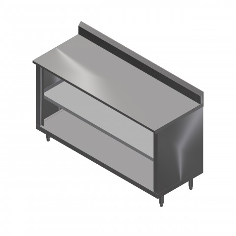 Work Table, cabinet base with open front, 36"W x 24"D, 14/300 stainless steel top with 5" backsplash, Stallion Safety Edge front, (1) midshelf, 18/430 stainless steel wrap, stainless steel legs with adjustable feet, NSF