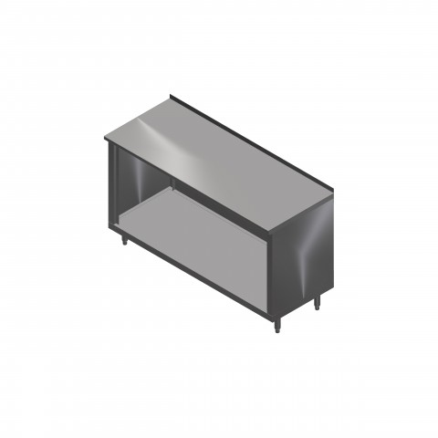 Work Table, cabinet base with open front, 48"W x 30"D, 16/300 stainless steel top with 1-1/2" rear up-turn, Stallion Safety Edge front, 18/430 stainless steel wrap, stainless steel legs with adjustable feet, NSF