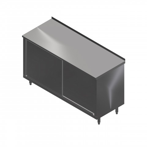Work Table, cabinet base with sliding doors, 72"W x 30"D, 14/300 stainless steel top with 1-1/2" rear up-turn, Stallion Safety Edge front, (1) midshelf, 18/430 stainless steel body, stainless steel legs with adjustable feet, NSF
